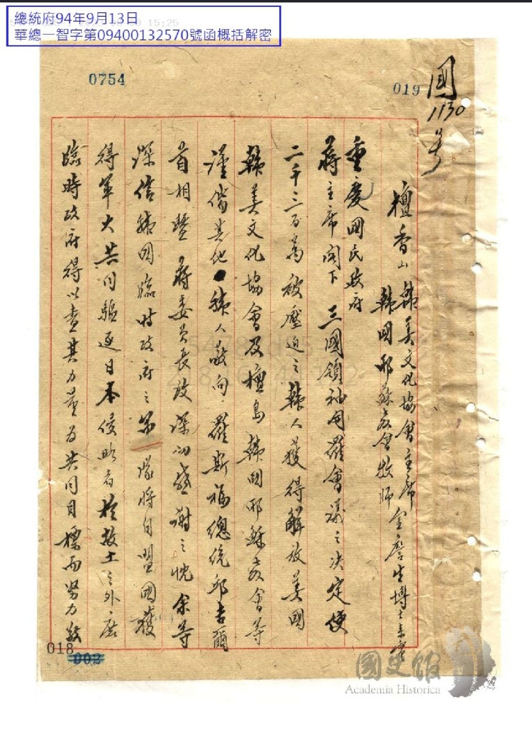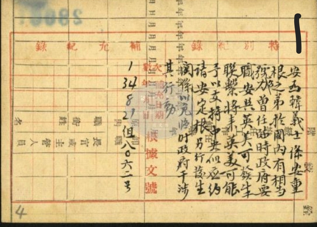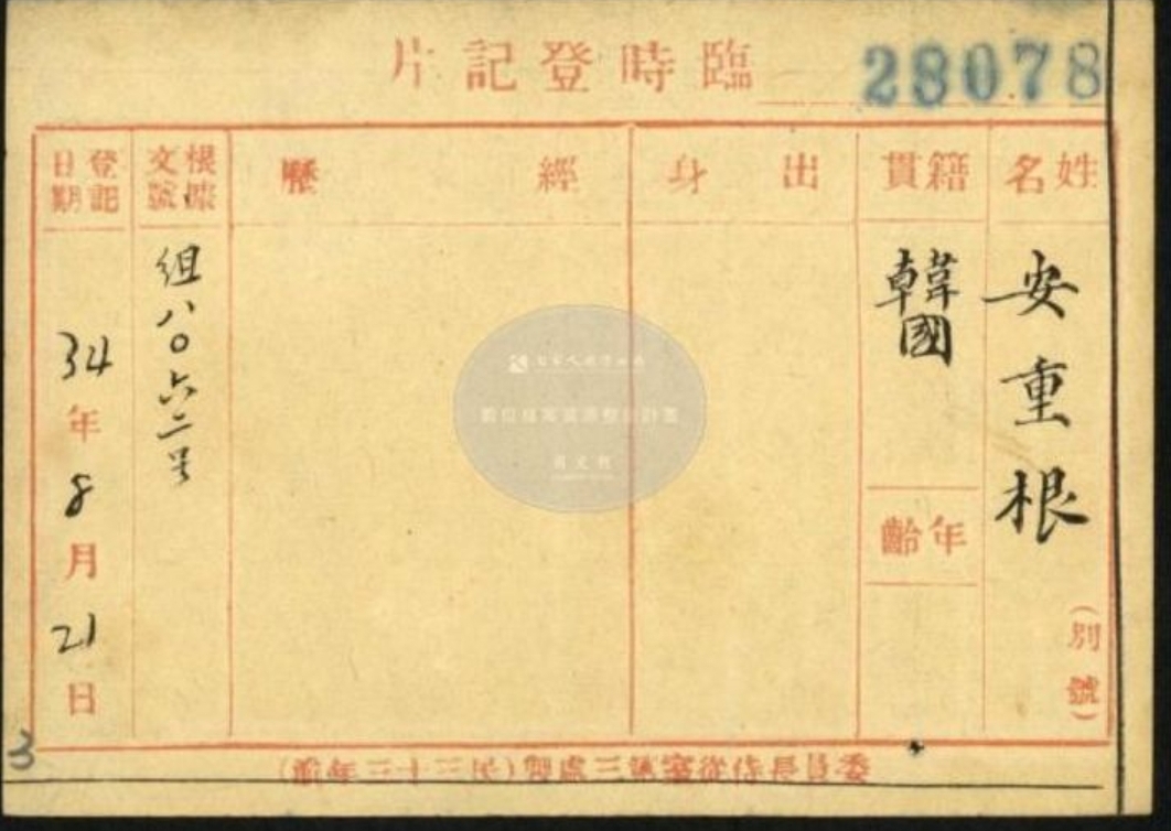 대만에서 안중근 의사 등 한국 독립운동가 관련 고문서가 발견됐습니다. 현 중국 공산당이 아닌 옛 중국 국민정부의 총통부 군사위원회가 1940~1950년대 작성한 ‘인사등기권’에 안중근, 안정근, 신익희, 홍진, 지청천, 조소앙 등 6인의 신상이 적혀 있었던 것입니다. 지난달 대만 국사관에서 발굴된 것을 국가보훈부가 알아내 17일 국내에 공개했습니다.