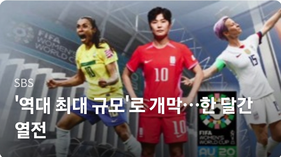 https://n.news.naver.com/sports/kfootball/article/055/0001074733 '역대 최대 규모'로 내일 개막…한 달간 열전지난해 카타르월드컵과 지난달 20세 이하 월드컵에 이어 이제 여자월드컵의 시간이 다가왔습니다. '역대 최대 규모'로 4년 만에 열리는 피파 여자월드컵이 내일(20일) 개막해, 한 달간의 열전에 n.news.naver.com오늘부터(7월 20일) 한 달간 호주와 뉴질랜드에서 여자 월드컵이 진행이됩니다. 여자 월드컵으로서는 역대 최초로 공동개최이며, 또한 처음으로 32개 나라가 참석하게 되었습니다. 기존에는 24개 나라가 참석하였으나 세계적으로 여자축구의 붐이 일어나면서 확대되었다고 하네요. 또한 이번 월드컵 상금 역시 1억 5000만 달러가 되면서..